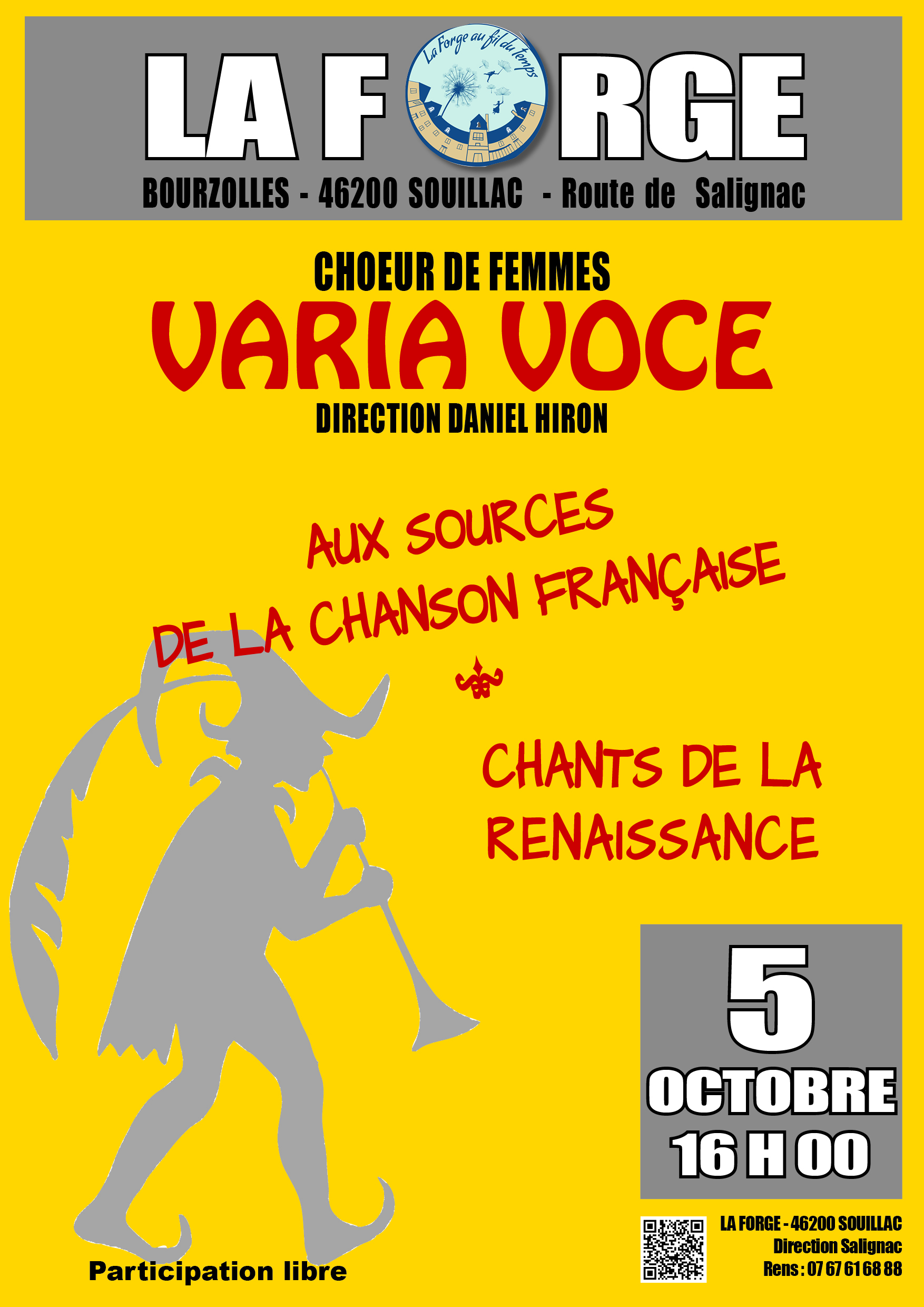 Le chœur de femmes Varia Voce sous la direction de Daniel Hiron vous donne rendez-vous à la Forge de Bourzolles