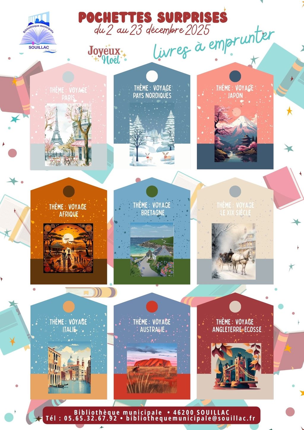Un grand choix de « pochettes surprises » pour adultes est disponible sur le thème du voyage. À vous de choisir la destination où vous souhaitez vous évader pour Noël.