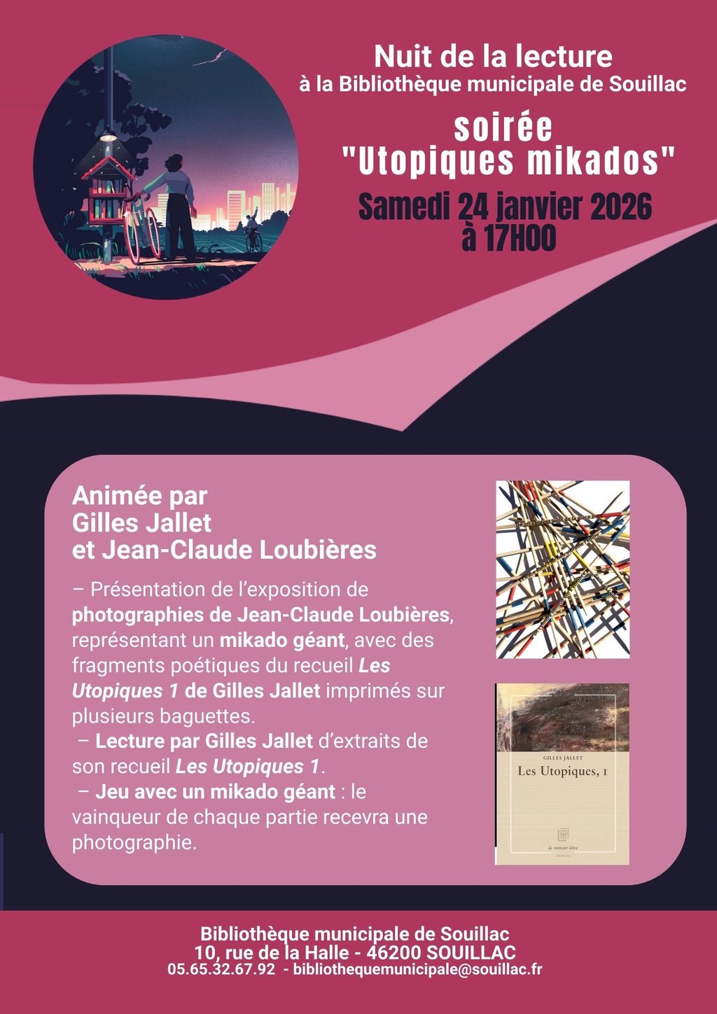 Dans le cadre des Nuits de la lecture, soirée « Utopiques mikados » animée par Gilles Jallet et Jean-Claude Loubières.